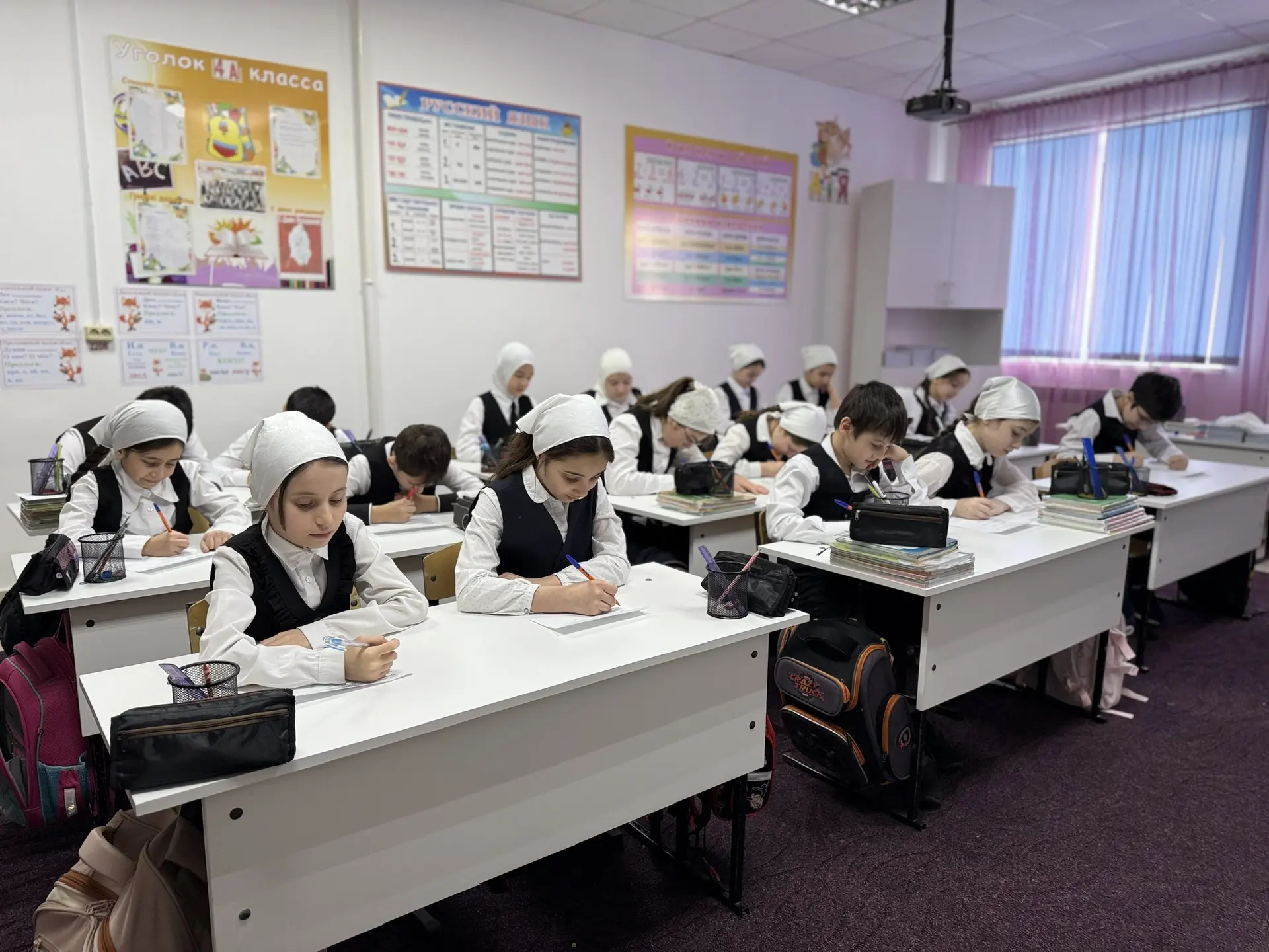В школе был проведён контрольный диктант по чеченскому языку среди учащихся 4-х классов. Данное мероприятие прошло в рамках регионального контроля и одновременно проводилось во всех общеобразовательных организациях Чеченской Республики.