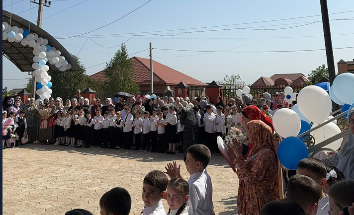 Торжественная линейка открылась гимном Российской Федерации и Чеченской Республики! Главными героями торжества стали, впервые перешагнувшие порог школы первоклассники.