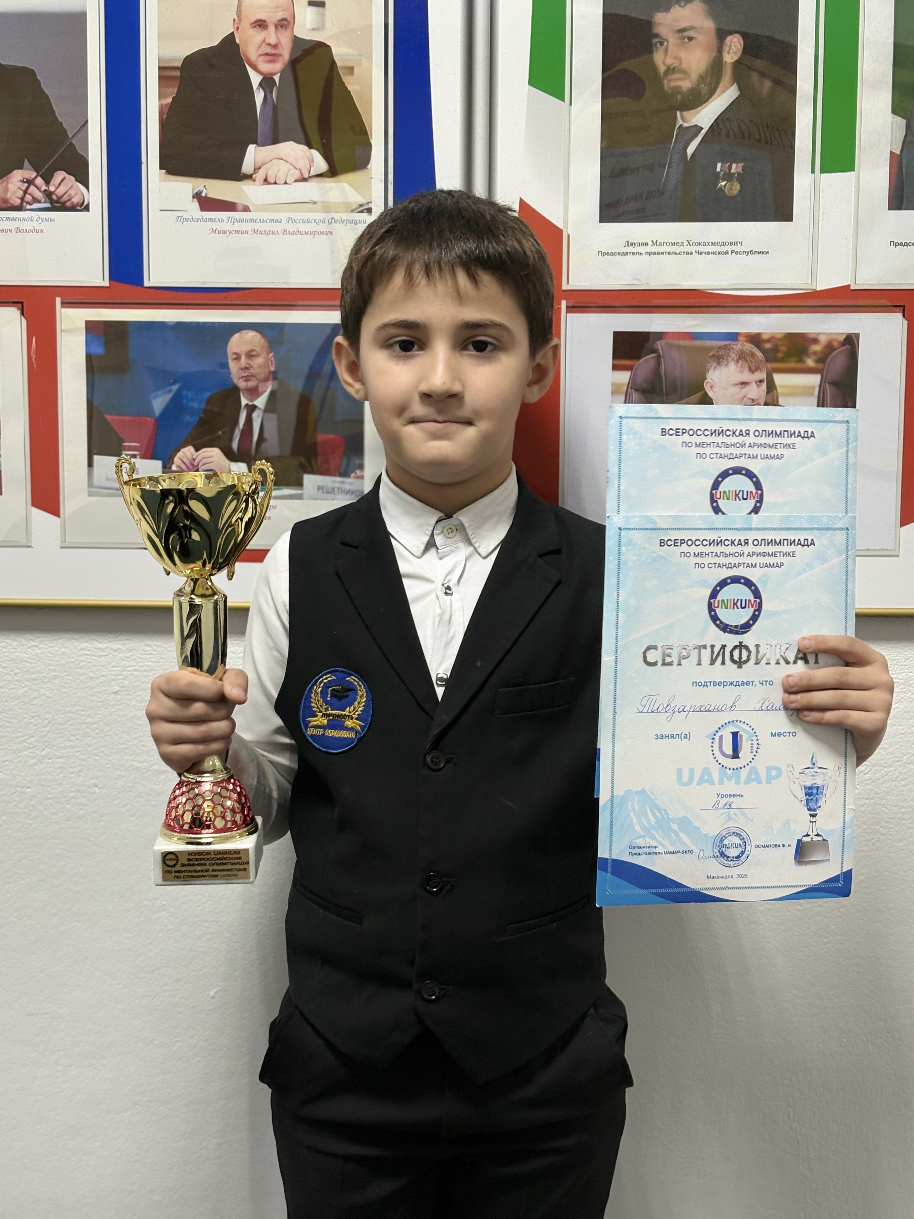 10.12.2025Ученик 2 «А» класса Товзарханов Халид принял участие во Всероссийской Олимпиаде по ментальной арифметике и по трем категориям занял первые места